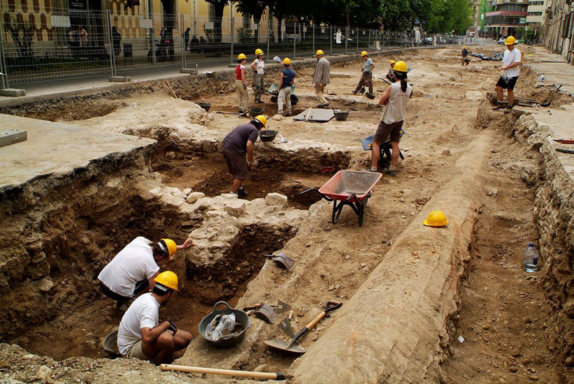 (Ampliar) - Excavacions a les places de l'Hospital i de Pompeu Fabra. 2005 Foto: Jordi S. Carrera. CRDI - Ajuntament de Girona.