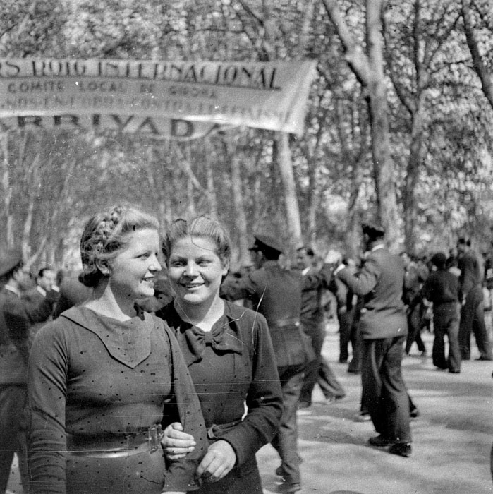 (Ampliar) - El 18 de juny de 1938, els soldats de la 43a Divisió que havien lluitat a Bielsa arribaven a Girona i eren rebuts pels ciutadans, eufòrics, que els reconeixien la seva resistència. Autor desconegut. Biblioteca Nacional.
