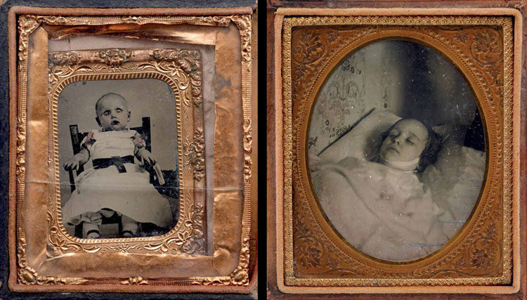 (Ampliar) - Les fotografies post mortem sovint eren lliurada en un estoig de cartró o amb un marc daurat. Fotografies de la colecció de Carlos Areces.