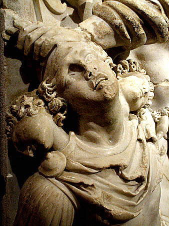 Detall. Hèracles lluitant contra Gerió. Relleu de la vil·la de Chiragan. Museu Saint Raymond, Tolosa de Llenguadoc.