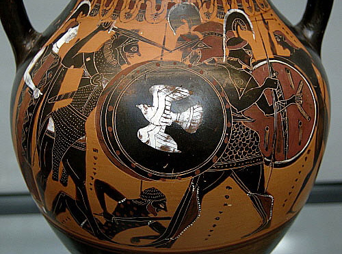 El mite de Gerió La fundació mítica, per desconeguda fins fa pocs anys, i per similitud fonètica, de la ciutat de Girona, havia estat atribuïda a Gerió, protagonista del desè treball de l'heroi Hèracles, qui tenia la missió de capturar els seus bous. El combat entre Gerió i Hèracles és descrit per Apol·lodor, i fixat per Hesíode, a la seva Teogonia, al segle VIII aC, on descriu el seu tret característic: la tricefàlia. La fixació de la seva ubicació geogràfica, amb diversos textos (1), a l'occident més remot, convertien Gerió en un personatge de l'altre món, una divinitat del més enllà. El primer autor de qui es té constància que esmenti aquesta fundació va ser el bisbe de Girona, i posterior cardenal, Joan Margarit, qui ho relata a Paralipomenon Hispaniae (2). Aquesta narració de l'orígen mític, i la primera referència a l'etimologia del nom, arribaren fins a la segona meitat del segle XIX, moment en què es va iniciar una recerca, a partir de dades arqueològiques. Durant força temps es va assumir que la fundació de Girona s'havia de cercar en un poblament ibèric, asseveració argumentada per l'existència de la muralla ciclòpia que es troba a l'interior de l'edifici de les Àligues, i que la població autòctona havia estat romanitzada després de la conquesta d'Hispània, fins esdevenir un municipi de dret llatí. ![]() La única representació coneguda fins ara a terres catalanes de Gerió és un bloc de pedra sorrenca amb relleus escultòrics aparegut durant les obres d'adequació, el 1985, de l'església de Sant Vicenç de Malla,a l'Osona, datat en l'època romana republicana, en el que apareix Hèracles lluitant contra Nessos, en una escena que descansa sobre una figura agenollada sobre el terra vestida amb pells, que representa a Gerió, atès que presenta el seu element més característic, que és el triple rostre. ![]() Hèracles i Gerió. Cara A d'una àmfora atica de figures negres, 540 aC aprox. Staatliche Antikensammlungen, Munich. (Wikipèdia) La persistència d'aquesta mitologia, ja d'una forma lúdica, a l'actualitat, ha tingut múltiples vessants: des de les interpretacions gràfiques de Carles Vivó, una marca de caramales, el nom del trenet turístic que travessa els indrets més coneguts de la ciutat, a un dels gegants de Girona, en Gerió, estrenat per l'agrupació gegantera Fal·lera Gironina l'any 2001. ![]() Combat d'Hèracles i Gerió, amb Ortre, el gos de dos caps, i Euritió, el vaquer, morts a terra). Àmfora calcídica de figures negres d'Itàlia del sud, 540 aC. Cabinet des médailles de la Bibliothèque nationale de France, Paris. (Wikipèdia)