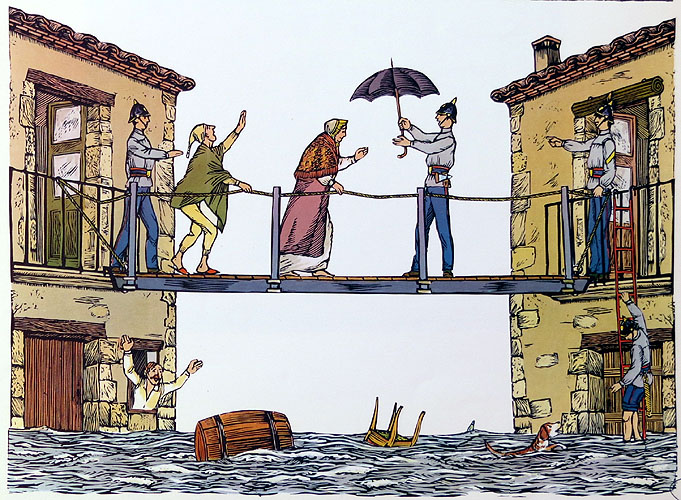 - Primera companyia de Bombers Pontoners de Girona. 1871. Dibuix de Joaquim Pla Dalmau.