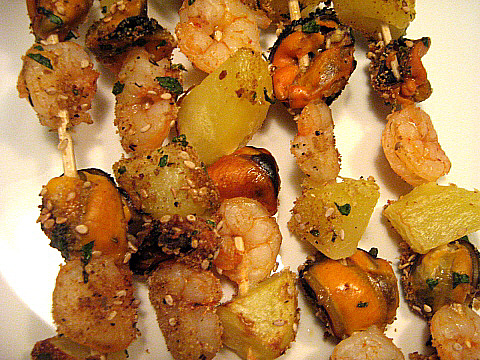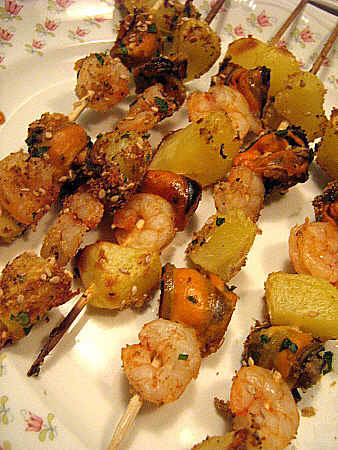 Cloïsses a la marinera Ingredients: Cloïsses, ceba, all, julivert, farina, vi blanc. Calamarsons amb ceba Pastis d'arròs i bolets Broquetes de gambes, musclos i patates Vedella guisada acompanyada de purè de poma Crema catalana amb pinya americana i litxis Ingredients per a la crema: ous, llet, sucre, canyella i pell de llimona. ![]() ![]() ![]() ![]() ![]() ![]() |