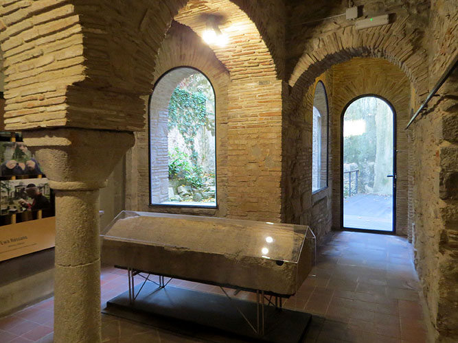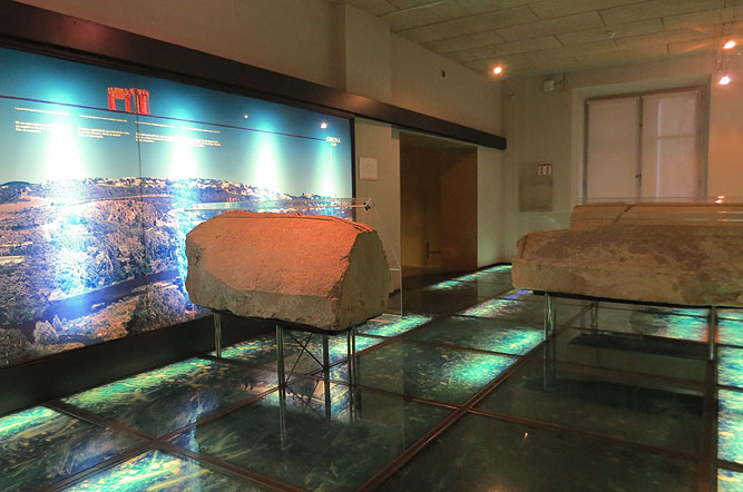 Museu d'Història dels Jueus 5. El fossar dels jueus. Passeig imaginari pel que va ser el cementiri de la comunitat des del segle XIII, situat al nord de la ciutat. La sala mostra en un panell lluminós el recorregut que havien de fer les comitives fúnebres des del Call al fossar. Les làpides aquí exposades contenen bells epitafis escrits en record de les jueves i dels jueus que varen viure a la ciutat, unes pedres amb nom que són una de les grans joies del Museu. [Article principal] . ![]() Vista parcial de una de les sales dedicades al fossar dels jueus - (Ampliar) ![]() Vista parcial de una de les sales dedicades al fossar dels jueus - (Ampliar) ![]() Làpida funerària. Segle XIII-XIV. Montjuïc, Girona. [Aquesta làpida sepulcral] és del gran R. Josua, fill de R. Sésset, que es va dirigir a la seva mansió eterna el mes de Quisleu de l'any ... tingui pau, reposi en el seu llit fúnebre per rebre la seva recompensa a la fi dels dies. Amén - (Ampliar) ![]() Vista parcial de una de les sales dedicades al fossar dels jueus - (Ampliar) ![]() Vista parcial de una de les sales dedicades al fossar dels jueus. Làpida funerària. 1198. Montjuïc, Girona - (Ampliar) ![]() Vista parcial de una de les sales dedicades al fossar dels jueus - (Ampliar) ![]() Làpida funerària. Segle XIV-XV. Carrer de Sacsimor, Girona. Aquesta és l'estela fúnebre de l'honrada N'Estelina, esposa de l'il·lustre i insigne En Bonastruc Jucef. Tinguin la seva part al jardí de l'Edèn. Amén - (Ampliar)