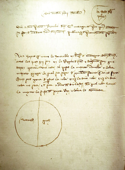 Pregó que ordena als jueus i jueves de Mallorca a lluir una roda distintiva. Mallorca, 22 de novembre de 1393 - (Ampliar)