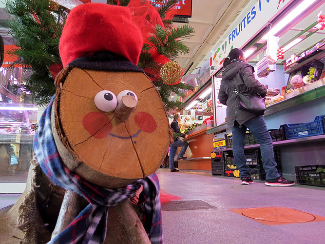 Reportatge fotogràfic de la decoració nadalenca a les instal·lacions i a les parades del Mercat del Lleó de Girona. 18 fotografies