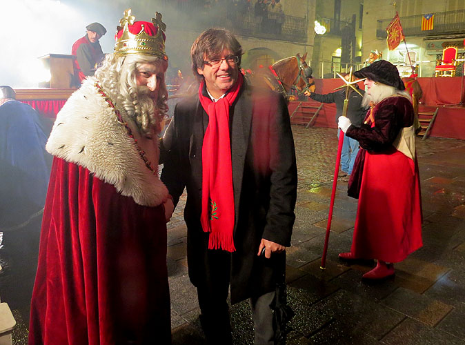 Dimarts, 5 de gener 2016 Reportatge fotogràfic de l'arribada a la plaça del Vi, la rebuda per l'alcalde de la ciutat i els parlaments. 36 fotografies.