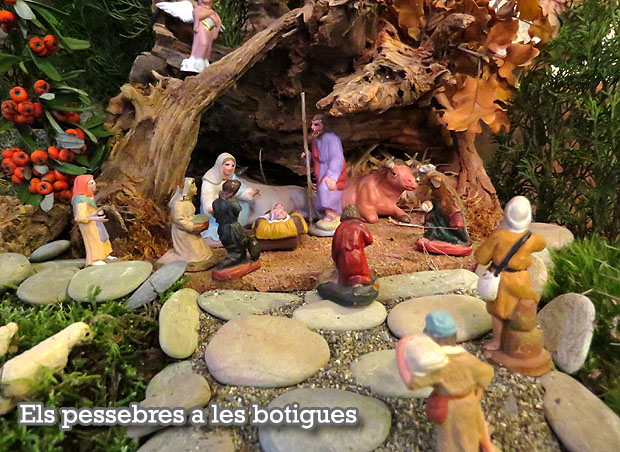 Durant les festes de Nadal, hi ha botigues que decoren els seus aparadors amb pessebres clàssics: els de molsa, ponts, cases i rius, el naixement, l'anunciació als pastors i els Reis, la dona que renta i el pagès que llaura, fins i tot el caganer ben amagat en un racó.