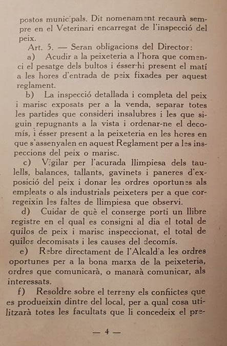 Reglament de la Peixeteria. 1931. Col·lecció particular. Gentilesa d'Abraham Simon. |