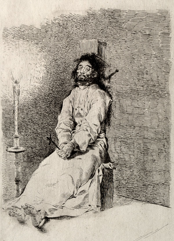 (Ampliar) - Executat per garrot, exposat. Gravat de Goya. 1777. Viquipèdia.