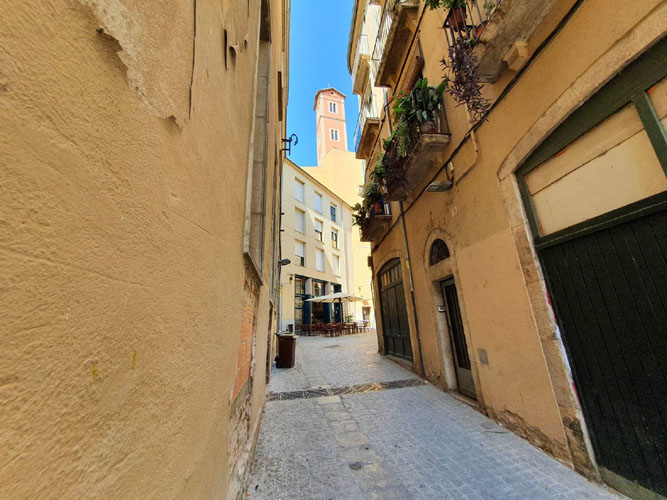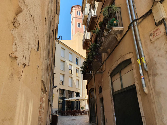 El carrer del Perill, al barri del Mercadal, enllaça l'antiga plaça del Molí, actualment carrer de Santa Clara, amb el carrer de la Sèquia, a frec de l'església parroquial de Santa Susanna del Mercadal. Es troben les primeres referències certes del carrer l'any 1527, quan s'esmenta el "carrer de la Volta del Perill", un pas porxat. Vint anys més tard, a l'Arxiu Històric de la Ciutat es documenta un "Hostal del Perill", situat entre el "Pla de Framenors" i la "Plassa del Mercadal"; el carrer era molt petit atès que només hi vivien quatre famílies.