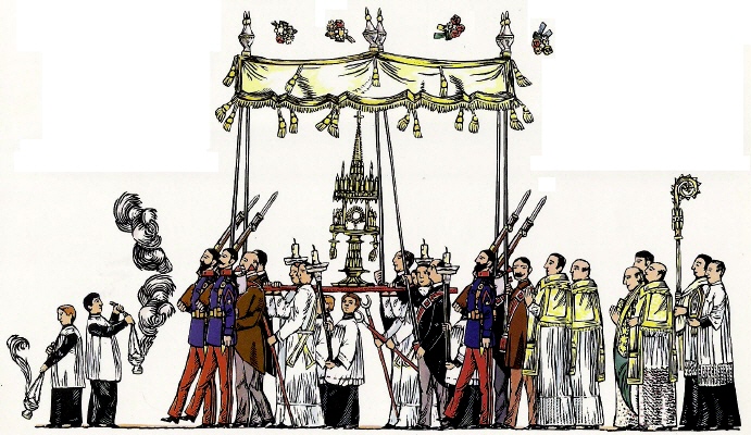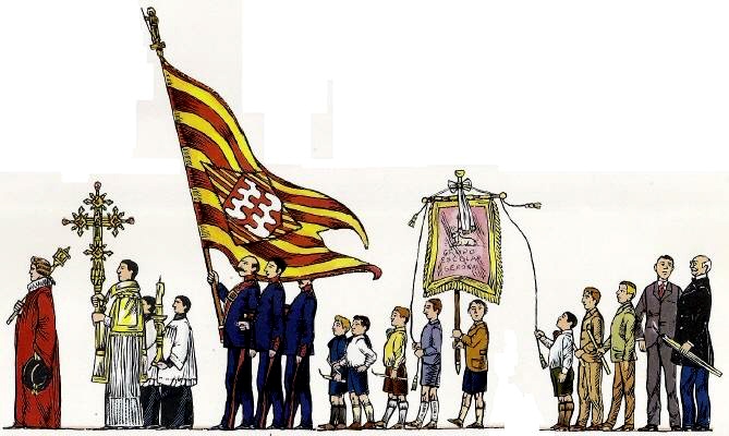 Processó de Corpus a Girona l'any 1918 . Dibuixos del Sr. Joaquim Pla i Dalmau.
