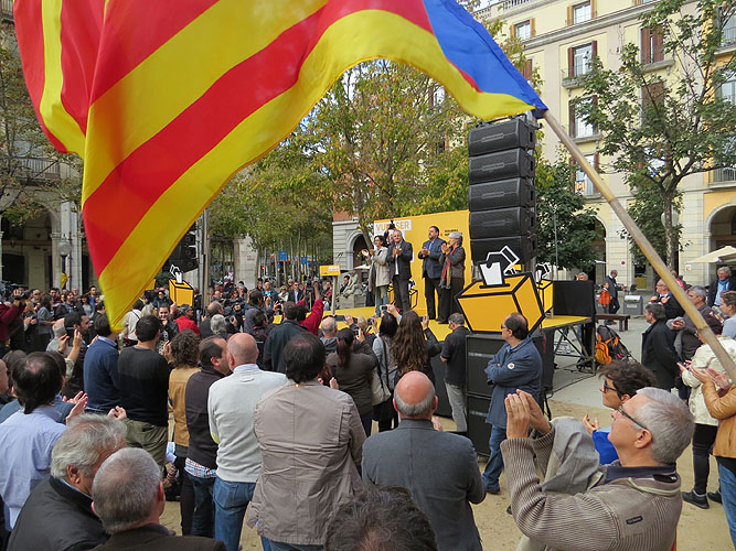 Síntesi: El dissabte 8 de novembre 2014 va tenir lloc a la plaça de la Independència un acte de crida a la participació a les votacions del 9N, amb l'eslògan "Vull ser lliure. Vull un nou país", en la que van intervenir el president d'ERC, Oriol Junqueras, Marta Rovira, Secretària General d'ERC, i l'alcaldable pel mateix partit a l'Ajuntament de Girona, Maria Mercè Roca. Així, ERC va tancar la campanya en aquest acte a Girona. Un miler de persones varen omplir la plaça per participar en l'acte que va comptar amb la presència i recolzament de representants de l’Aliança Lliure Europea, com François Alfonsi, militant i que va ser secretari general de la unió del poble Cors.