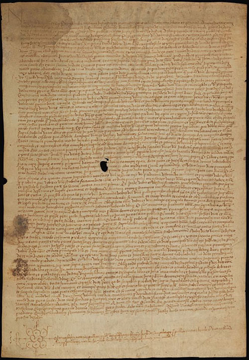 (Ampliar) - 14 de juliol de 1492. Document signat davant notari, només quinze dies abans que acabés el termini legal per que els jueus marxessin de Girona, on la comunitat jueva cedeix les làpides del seu cementiri de Montjuïc a Joan de Sarriera. Arxiu Històric de Girona.