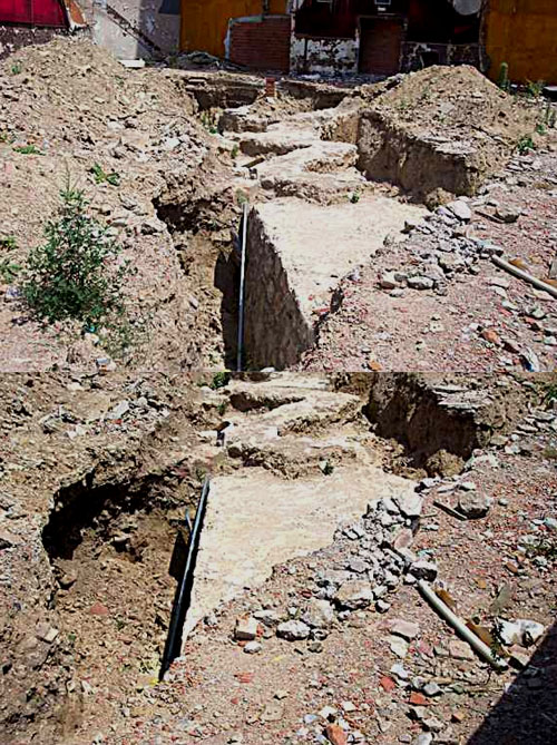 (Ampliar) - Restes del baluard de la Santa Creu localitzades al solar de l'antic cinema Ultònia. 2003. Imatge gentilesa de eldimoni.com
