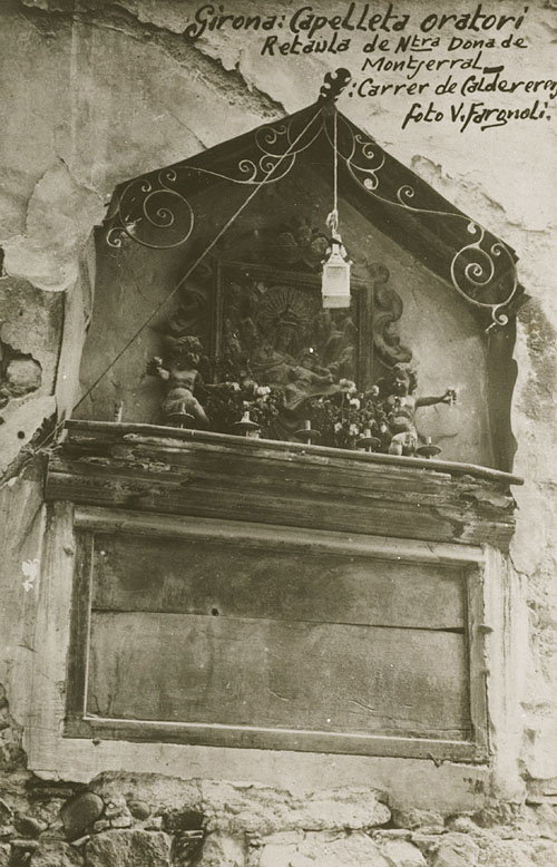 (Ampliar) - Capelleta-oratori a la Mare de Déu de Montserrat, al carrer Calderers. 1911. Valentí Fargnoli i Annetta. CRDI - Ajuntament de Girona.