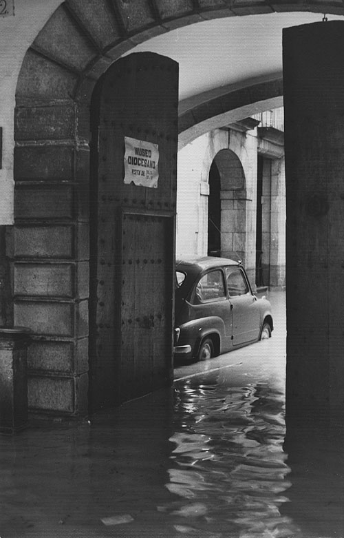 (Ampliar) - Inundació de la Casa Carles, seu del Museu Diocesà fins el 1974, pel desbordament del riu Onyar. 1962. Josep Buil Mayral. INSPAI - Diputació de Girona.
