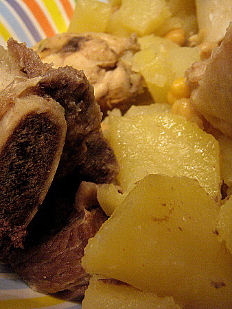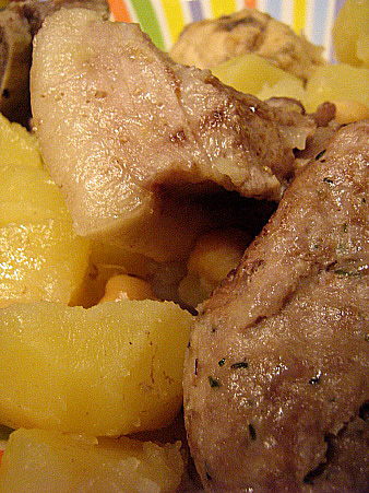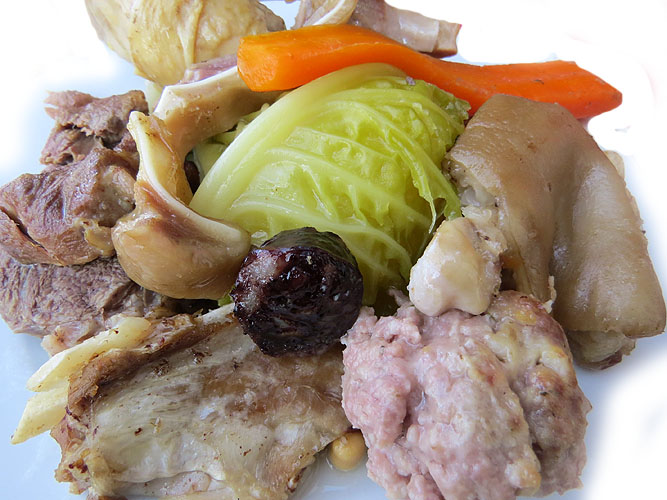 Seguia després un esplèndid lluç de palangre, bullit, amb salsa maionesa, i culminava amb la majestat daurada i perfumada del gall (2), capó o gall dindi rostit, farcit de panses, prunes, pinyons, salsitxes i "llomillo", que era rebut amb crits de joia, i aplaudiments per part dels comensals. Cada any, en treure les salsitxes de dins del gall era broma obligada que la mainada digués: "s'han deixat les tripes, s'han deixat les tripes".
