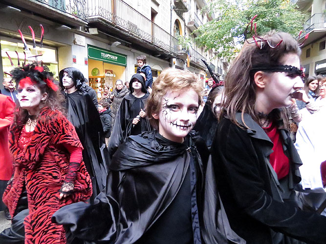 (Ampliar) - Belcebuna capitanejant la cercavila.Després d'una cercavila, que va sortir de la plaça del Pallol i va finalitzar a la plaça del Vi, animada per la característica Belcebuna dels Pastorets de Girona, els nens i nenes podien convertir-se en dimoniets passant, primer, per un taller de maquillatge que complementaven amb les banyes característiques dels Llucifers i Satanassos i, per acabar, fent una carta que els patges infernals entregarien hores més tard als reis de l'infern amb els desitjos i trapelleries que volien aconseguir per aquest any.