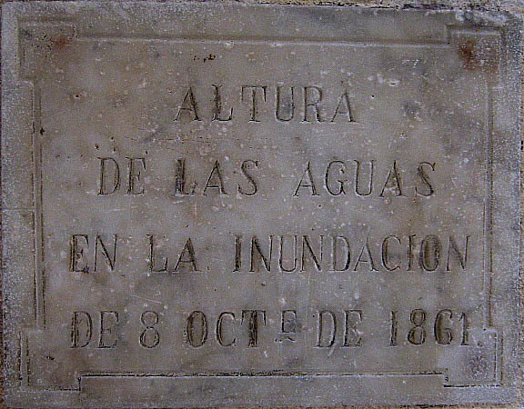 Els rius de Girona, el Ter, l'Onyar, el Güell i el Galligants, d'aparença habitualment tranquil·la i reposada, històricament han provocat amb la força destructora de les seves crescudes inundacions, durant les quals, sovint, els ponts i les cases properes al rius eren arrossegades fins a la mar, destruccions que, durant l'Edat Mitjana, portaven com a conseqüència epidèmies i grans mortalitats. ![]() La que es considera la primera inundació documentada és la que es va produir el 1367. Aquesta riuada s'endugué el pont de fusta que hi havia al carrer de la Cort Reial. També van ser molt greus les dels anys 1421, 1425 i 1445, en la primera de les quals va quedar molt malmès el pont de pedra que existia a la meitat del carrer de Pedret. En la del 1425 les aigües van acabar d'enrunar totalment aquell pont. En la de 1445, consta que l'Onyar es va emportar un pont que hi havia en el portal anomenat de Bonaventura, en el Mercadal, i també algunes cases del barri. Durant el segle XVI s'enregistraren inundacions els anys 1519, 1552, 1579 i 1599. Com a conseqüència de la inundació de 1519, l'església de Sant Nicolau es va haver de reforçar amb contraforts perquè queda greument afectada. En la del 1599, s'ha documentat que l'Onyar va destruir cinc cases i va arribar a una alçada de dotze pams en el carrer de la Cort Reial. Al final del carrer de Pedret, existeix una làpida en la qual es fa constar que l'aigua va arribar deu pams per sobre del nivell del carrer. Cinc anys més tard, el 1604, el Ter va destruir una part de la muralla i va fer caure el portal de la Barca. En el segle XVII, les inundacions més importants les va patir la ciutat en els anys: 1617, 1623 i 1678. En la inundació de 1623, es parla d'unes mesures-patró, propietat de l'Ajuntament, que estaven instal·lades en un local, en l'extrem de la plaça de les Cols, actual Rambla de la Llibertat, a la cantonada amb el carrer de l'Argenteria i de Besadó. Més tard aquelles mesures van ser instal·lades en els baixos del actual Ajuntament, a la plaça del Vi, on van estar fins a mitjans del segle XIX. Actualment estan dipositades en el Museu d'Història de la Ciutat. Les inundacions més grans enregistrades durant el segle XVIII van ser les dels anys 1716, 1732 i 1763. Durant la de 1732, la riuada de l'Onyar va destruir 8 cases i es va endur el pont de Sant Agustí que s'estava a punt d'acabar. Per altra banda, el Galligants va enderrocar una casa i part de la muralla. En la tercera, 1763, el nivell de les aigües va pujar molt, però afortunadament no va ocasionar grans desgràcies, inundació que s'anomenà de Santa Teresa pel fet d'haver succeït en el dia en que se celebrava la festivitat d'aquesta santa. Aquesta revinguda, conjunta del Ter, l'Onyar i el Galligants, va fer estralls a l'abadia i l'església de Sant Pere. En el segle XIX, en el mes de setembre del 1843, va tenir lloc una de les més importants. A conseqüència del desbordament del Galligans, es va produir una gran inundació en el barri de Sant Pere(1). La força de les aigües va arrancar l'angle sud i est del monestir de Sant Pere, exclaustrat des del 1836, i el va enfonsar 22 pams, va enrunar diversos edificis que s'havien construït sobre les voltes aixecades sobre el Galligants; aquells esfondraments i les aigües crescudes inundaren tot el barri, provocant més d'un centenar de morts i nombrosos danys en el sector. El monestir va patir moltes vegades danys per les revingudes del Galligants, i fou necessari reparar-lo. Així, l'aiguat del 1552 (18 d'octubre, anomenat "aiguat de Sant Lluc"), afectà seriosament l'església i el claustre. El 9 d'octubre de 1861, una altra riuada va afectar la ciutat; de l'alçada de les aigües en deixa constància la làpida situada a l'entrada de l'Ajuntament de la ciutat. ![]() Làpida de marbre al pati de l'Ajuntament, commemorativa de l'alçada de la riuada del 1861, damunt d'un resalt de la pedra que testimonia els seixanta centímetres que va assolir l'aigua en aquest indret. Durant la primera meitat del segle XX, la més important va ser la que es va produir el 18 d'octubre de 1940. El Ter, a causa del desglaç dels Pirineus i les intenses pluges de llevant, després d'inundar la plana de Vic causant-hi grans estralls, va entrar a la comarca del Gironès; degut a la seva gran crescuda va obstruir les desembocadures dels rius Onyar, Güell i Galligants, provocant a Girona 8 morts, entre ells l'Alferes Huarte, en enrunar-se el pont que creuava el riu Güell entre la Devesa i la ronda de Ferran Puig, quan intentava salvar altres persones, infructuosament. També es va endur per endavant el pont de fusta que hi havia entre el carrer del Carme i la plaça del Mercat sobre el riu Onyar. Aquest pont reconstruït, porta el nom d'Alferes Huarte en memòria del seu gest heroic. Les aigües van arribar a més de 3 metres a la Devesa, i en alguns punts de la ciutat com la Rambla, Argenteria, Ballesteries, Cort Reial, etc. va arribar als 2 metres o més de nivell. En anys posteriors hi han hagut altres inundacions, com les dels anys 1962, 1963 i 1970, però no amb l'ímpetu i la destrucció d'aquesta. Les alçades assolides per aquestes darreres revingudes dels rius de la ciutat estan indicades a la paret d'un immoble del carrer de les Ballesteries. ![]() Indicacions de les alçades assolides per les aigües durant les tres darreres inundacions a Girona, al dintell de la porta d'un immoble del carrer de les Ballesteries. Notes