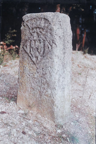 (Ampliar) - Pedra "Per la mitja llevga", situada actualment a la placeta de l'Institut Vell, cal capdamunt de la Força.