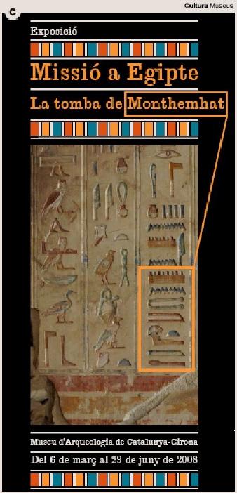 El més interessant de la tomba és la presència de grafits escrits en dialecte cari, publicats per Pere Villalba el 2007. Aquests són nombrosos (prop de 60) i indiquen una gran presència d'aquests grecs de l'Àsia Menor a la zona de Tebes. Sembla qu es podria relacionar amb la presència de mercenaris a les ordres de Monthemphat. Aquesta hipòtesi seria la més plausible però no deixa de ser, a manca de més proves científiques el que es deia a l'Antiguitat: un conte cari. La tomba presenta una orientació d'est a oest, ja que, segons les tradicions religioses egípcies, l'oest era el lloc dels morts. Una rampa de gairebé 70 metres permet accedir al vestíbul del sector inferior. Aquesta és l'única rampa de la tomba, tot i que a l'interior hi ha nombrosos trams d'escales. Les dimensions de la super-estructrura, dignes d'un autèntic recinte funerari faraònic, van permetre que fos coneguda pels primers viatgers europeus a començaments del segle XIX. Durant els anys cinquanta i vuitanta s'hi van efectuar treballs de neteja i de restauració. La tomba consta de dos patis oberts i d'un mínim de 57 estances subterrànies, descobertes fins ara. El primer pati té cinc capelles al nord, mal conservades, i cinc capelles al sud, en millor estat de conservació. La neteja i la restauració de les parets s'efectua mitjançant un sistema de bastides similar al de fa mil·lennis. Quan Xavier Martínez hi va entrar per primera vegada milers de fragments de paret, amb inscripció jeroglífica o relleu, estaven escampats per terra. Una de les seves tasques va consistir en reconstruir aquest passat fragmentat, mitjançant la classificació d'aquests fragments i la recerca, en noves campanyes, de la seva posició original. Aquesta tasca és molt laboriosa i pot ser portada a terme amb l'ajut, cada vegada més important, de la informàtica. Imatges i dades dels textos gentilesa de Xavier Martínez Babón, co-director de la missió. |