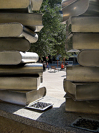 L'artista en la fase inicial de col·locació de la peça a la plaça que també porta el nom de l'autor de "Girona, un llibre de records". - Per què es va escollir aquest indret? - Durant més de dos anys, vaig dubtar si el lloc escollit era el més adient per a aquest homenatge permanent a Josep Pla. Pensava en un lloc de la Girona vella. Fins que vaig adonar-me que si volem que Pla sigui un legat per a les futures generacions de gironins i de catalans, s'havia de creuar l'Onyar. - Quines singularitats presenta una escultura al carrer? - L'escultura exterior és de característiques molt diferents de les pensades per interiors. Aquestes darreres es relacionen amb uns espais limitats, determinats, són molt més personalitzades, intimistes. A l'exterior és al·legòrica, commemorativa. Són per ser participades comunitàriament. En un encàrrec d'obra exterior sento l'obligació de fer una peça molt més entenedora per a tothom, des d'un infant com per una persona gran. - Tornem a la peça dedicada a Pla. Ja en sabem la idea inspiradora, semblaria que el més important o el que s'ha primat és l'obra abans que l'autor? - En primer lloc he de dir que aquesta és una obra d'homenatge a l'escriptor Josep Pla i a la seva obra literària importantíssima. Per aquesta raó vaig trobar escaient representar els 44 volums de la seva Obra Completa i que des dels més menuts, als més grans poguéssim valorar la gran importància de la feina de Pla. Per aquests motius vaig escollir una al·legoria formal-conceptual del personatge i la seva obra. He preferit aquesta expressió en lloc d'una més abstracte que podria representar més el meu estil que no pas a la persona a qui s'adreçava l'homenatge. Vaig entendre que jo havia de servir a Josep Pla, però servir-me de Josep Pla. - Encara que suposem el to de la resposta demanem a Pia Crozet si voldria més escultures als carrers de Girona. - Evidentment m'encantaria i penso que a tots els artistes. Personalment m'agradaria fer una bona peça a la Girona vella i a la Girona nova per donar sentit a aquesta part de la ciutat. A comarques he vist llocs on m'encantaria fer-hi feina. Penso en indrets com el Cap de Creus, l'entorn de Púbol pensant amb Gala com Figueres ho ha fet amb Dalí, fins he pensat en una escultura de la deesa Pyrenne per situar en un indret entre les Catalunyes nord i sud, l'illot de Sa Palomera com a porta de la Costa Brava. Des de l'antiguitat, per mitjà de l'escultura s'ha concretat i perpetutat els sentiments religiosos, polítics, estètics i els tenim amb nosaltes. L'escultura actual intenta comunicar aquests mateixos valors. Per mi l'escultura és un volum, petit o gran, magnetitzat. Sense aquest magnetisme l'escultura és peça morta i no un vehicle de comunicació, esdevé un joc personal i l'escultura és molt més que un joc personal. - Per aconseguir aquests objectius cal una sensibilització interartística, a partir dels projectes arquitectònics, també per part de les institucions? - Sortosament els tallers d'arquitectura actualment són conscients d'aquesta necessitat integradora de les diferents tècniques artístiques. Després d'un període en el qual varen ser foragitats els artesans, artistes, jardiners, fet que va ser un gran error, s'està tornant a la integració artística, no pas a afegir elements, siguin escultures o d'altres, per donar pas a un espai anímic que permeti vivificar el conjunt i conferir al conjunt una funció social dignificant. Girona, que, mercès a aquesta realitat de l'escultura-arquitectura o arquitectura-escultura, ha assolit un nom universal, ha iniciat, sortosament, una recuperació d'aquestes tradicions. Les peces que tenim ja en els carrers i places són una referència visual de la continuïtat dels valors de Girona com a ciutat culte. - Satisfacció en veure materialitzat aquell somni d'un diumenge de desembre? - Estic agraïda a tots els que han fet possible l'obra que per mi representa la culminació de molts anys d'esforç per integrar-me en la vida espiritual i popular de Girona. J. Victor Gay. Publicat a "Diari d'un segle. Diari de Girona", número 33. Sense data. |