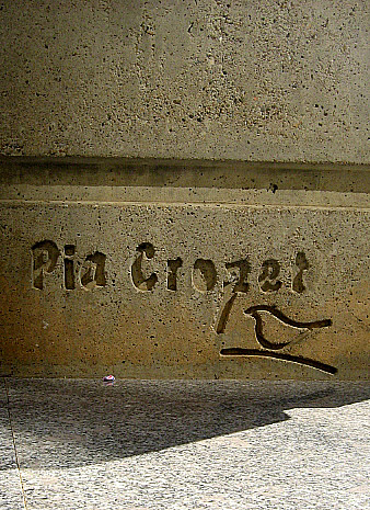 Signatura de Pia Crozet a la base del monument.