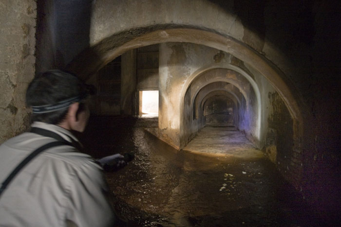 L'ample pas subterrani del final del carrer amb el de Santa Clara, la gran canonada construïda per tal de fer-hi passar aigua per a l'aprofitament industrial dels antics molins, té uns dos-cents metres de longitud, comta amb una volta de rajolí i acaba en un espai circular. L'any 2018, les obres realitzades per adequar la Central elèctrica del Molí per a oficines municipals, amb l'equip dirigit per l'arqueòloga Maribel Fuertes, va permetre documentar les restes medievals del segle XIV que encara es conserven sota el carrer de Santa Clara i que connecten amb el riu Onyar, malgrat les modificacions modernes i contemporànies que s’hi han anat fent. S'hi varen localitzar les restes de l’antic Molí de Baix i del pont que cobria tres canals subterranis del rec comtal.