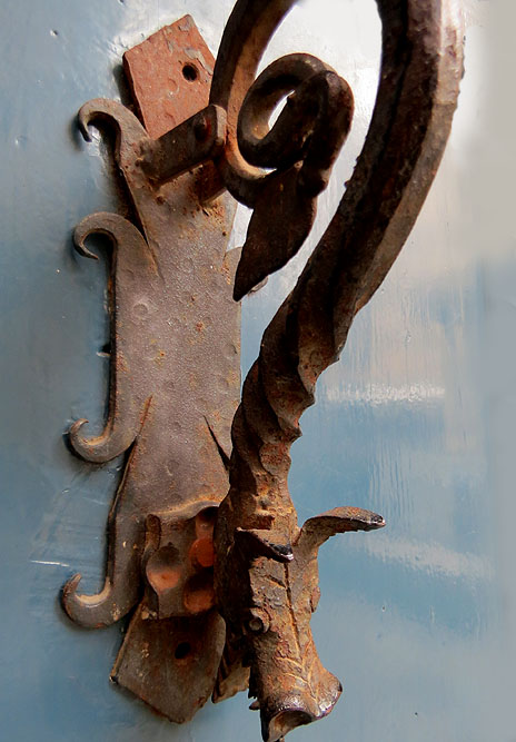 (Ampliar) - Picaporta de forja en forma de drac a un dels habitatges de la plaça.