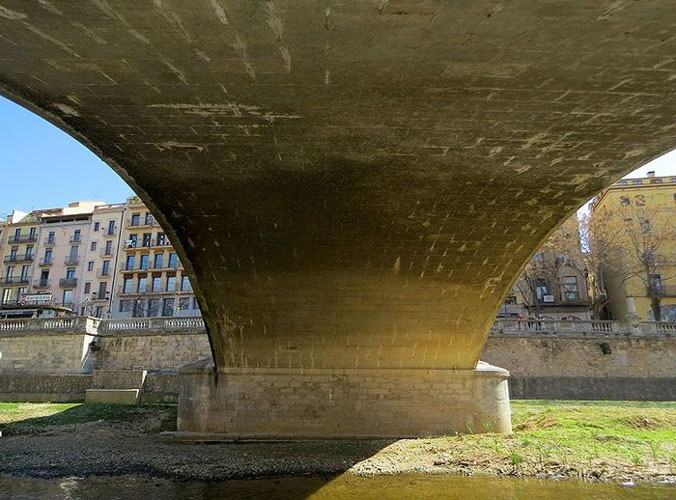 (Ampliar) - El pont de Pedra des de la llera de l'Onyar. Notes