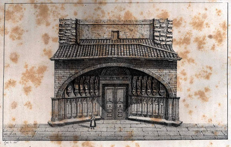 (Ampliar) - La porta dels Apòstols, 1842. Gravat d'Antoni Roca Sallent. Col·lecció Ajuntament de Girona