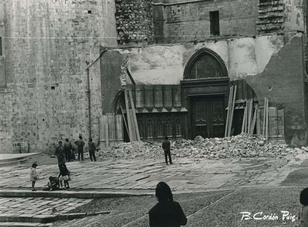 (Veure imatge sencera) - Eliminació de la coberta de la portalada, 1960. Benjamí Cordón Puig. Col·lecció Ajuntament de Girona - CRDI