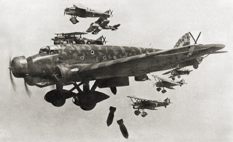 Un Savoia-Marchetti SM.81 durant un atac de bombardeig en la Guerra Civil espanyola. (Wikipèdia)