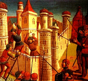 ![]() Assalt a una plaça segons una miniatura francesa de l'època (Wikipèdia).