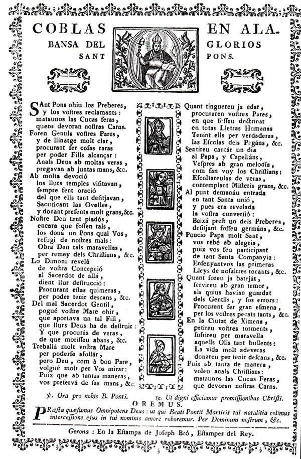 (Ampliar) - Gravat antic de sant Ponç. Procedència: "Goigs de sant Ponç, bisbe i màrtir, venerat a l'església romànica de Pujalt".