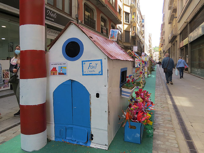 Del 8 al 16 de maig de 2021 es va celebrar a Girona una edició atípica de l'esdeveniment "Girona Temps de Flors", en aquesta ocasió "A cel obert", en la que totes les instal·lacions i muntatges són en espais oberts. Instal·lació floral 'Les cases del món' al carrer Nou - zona U, espai habitualment dedicat a les creacions de les escoles de la ciutat. Autoria: Associació de Comerciants zona U de Girona i docents de 45 escoles.