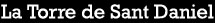 (Ampliar) - Plano de situación del Castillo de Monjuich y de las torres de San Luis, San Narciso y San Daniel. 1801. Archivo General Militar de Segovia. La torre de Sant Daniel. És una gran torre de planta ovalada, poca alçada i poderosos murs atalussats que havia estat envoltada per un espectacular fossat del qual encara en queda gairebé la meitat. Situada a una distància de 350 m del castell de Montjuïc, la seva funció era controlar l'accés nord-est; per això disposava d'una bateria de 6-8 canons. Durant el setge de 1808 va quedar molt malmesa, però es va reconstruir urgentment i va tenir un important paper en el setge definitiu de 1809. Encara s'hi observen fileres de les antigues dependències, una petita cisterna, algunes de les troneres i el lloc on estava situat el pont llevad&eiacute;s per accedir a l'interior.