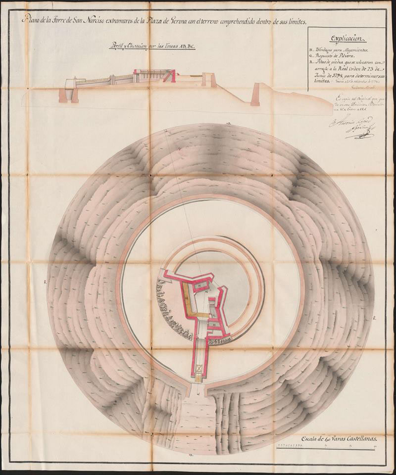 (Ampliar) - Plano de la Torre de San Narciso extramuros de la Plaza de Gerona con terreno comprendido dentro de sus límites. 1801. Archivo General Militar de Segovia.